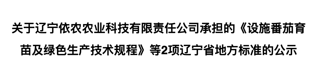 根據遼寧省地方標準管理辦法(遼農監(jiān)[2017]34號)要求,現將遼寧依農農業科技有限責任公司和遼寧省農業科學院共同承擔的《設施黃瓜育苗及綠色生產技術規(guī)程》征求意見稿和《設施番茄育苗及綠色生產技術規(guī)程》等2項遼寧省地方標準進行公示,并面向社會征求意見.